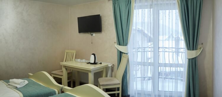 Категорія “Двомісний номер з окремими ліжками” – це тип номеру, що облаштований двома окремими ліжками, шафою, зручним робочим столом, безкоштовним Wi-Fi і плазмовим телевізором, що ідеально підходить як для відпочинку, так і для бізнес поїздки. В даному варіанті розміщення є балкон з видом на внутрішній двір.