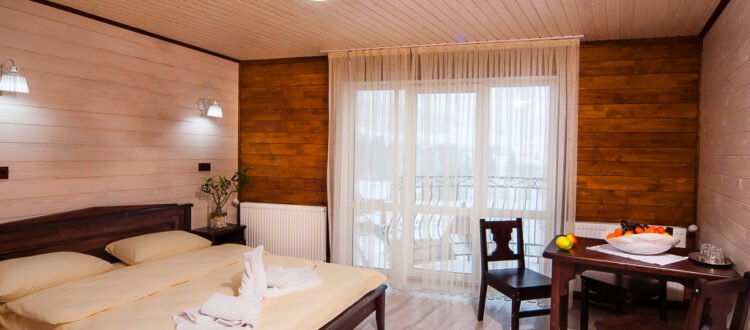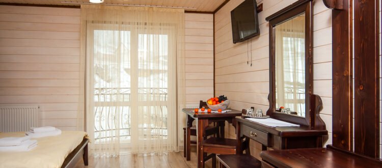 Категорія “Покращений двомісний номер” – це затишний номер, що оснащений двоспальним ліжком, місткою шафою, зручним робочим столом, феном, безкоштовним Wi-Fi і плазмовим телевізором з інтернет телебаченням, отопленням. Дана категорія номерів відрізняється від категорії “Двомісний” більшою площею та виглядом на гори.